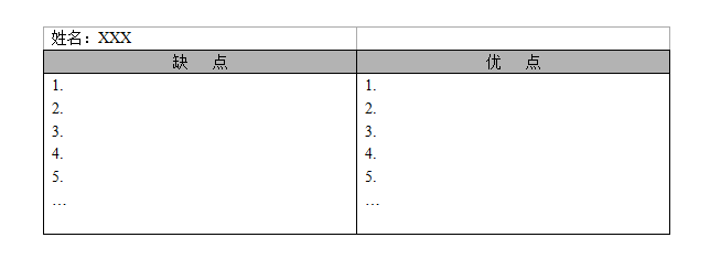- 第三步,在左邊“缺點(diǎn)”欄中,寫(xiě)下全部你不喜歡他的理由或他身上全部缺點(diǎn);